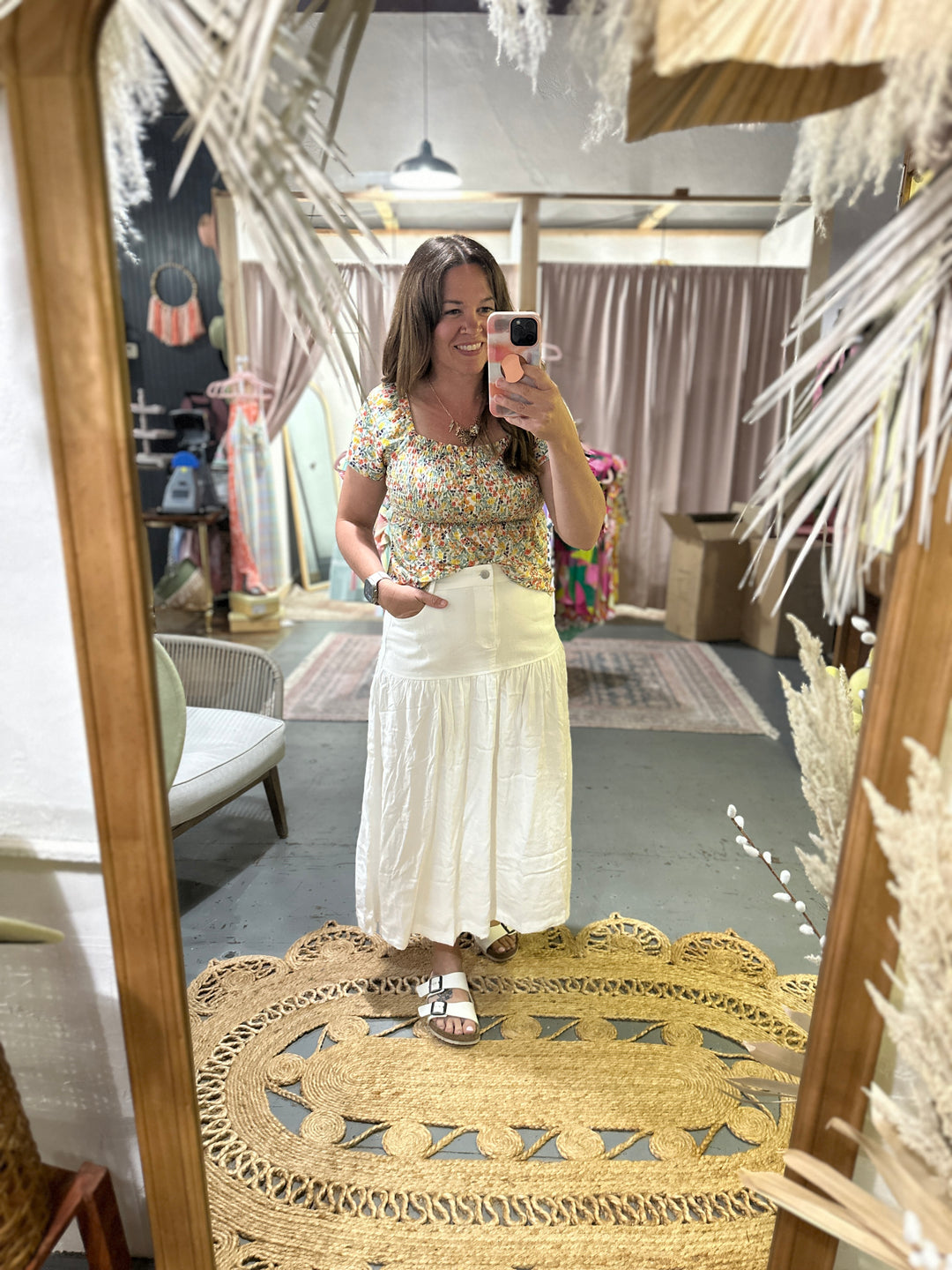 Fuzed Fabric White Maxi Skirt