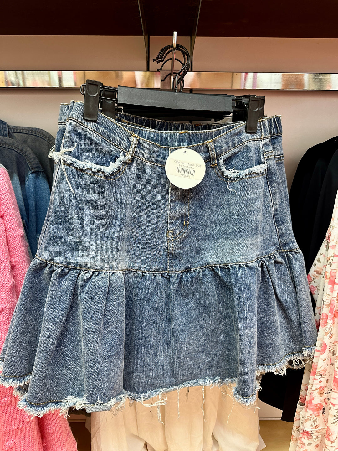 Drop Hem Denim Skirt