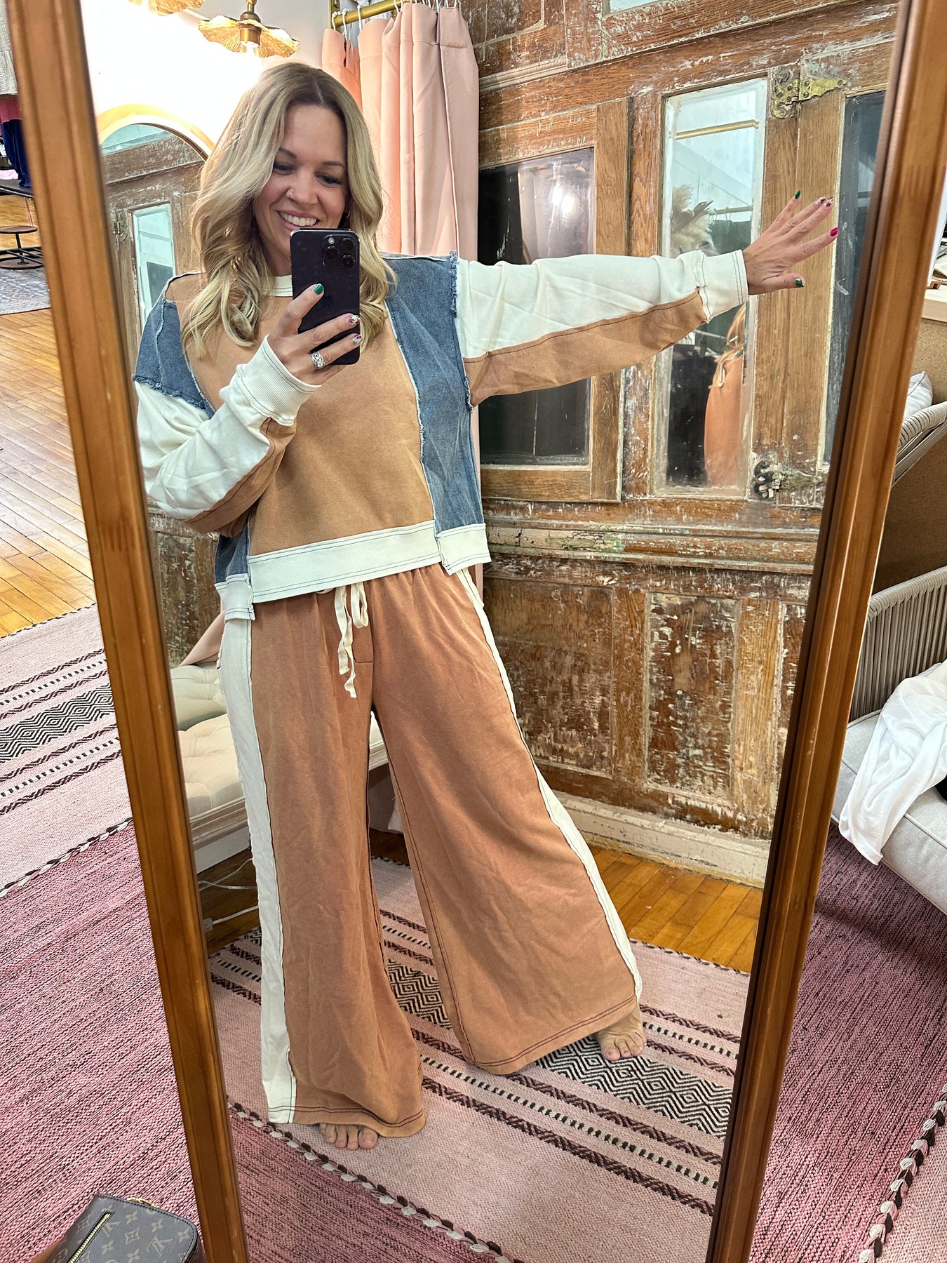 These Cinnamon Wide Leg Pants bring a fun twist with their denim waistband paired perfectly with ivory and tan legs. The playful color mix adds an unexpected pop to your casual wardrobe, while the wide leg cut ensures ultimate comfort and easy movement all day long. Perfect for those who love a little flair with their classic styles!
