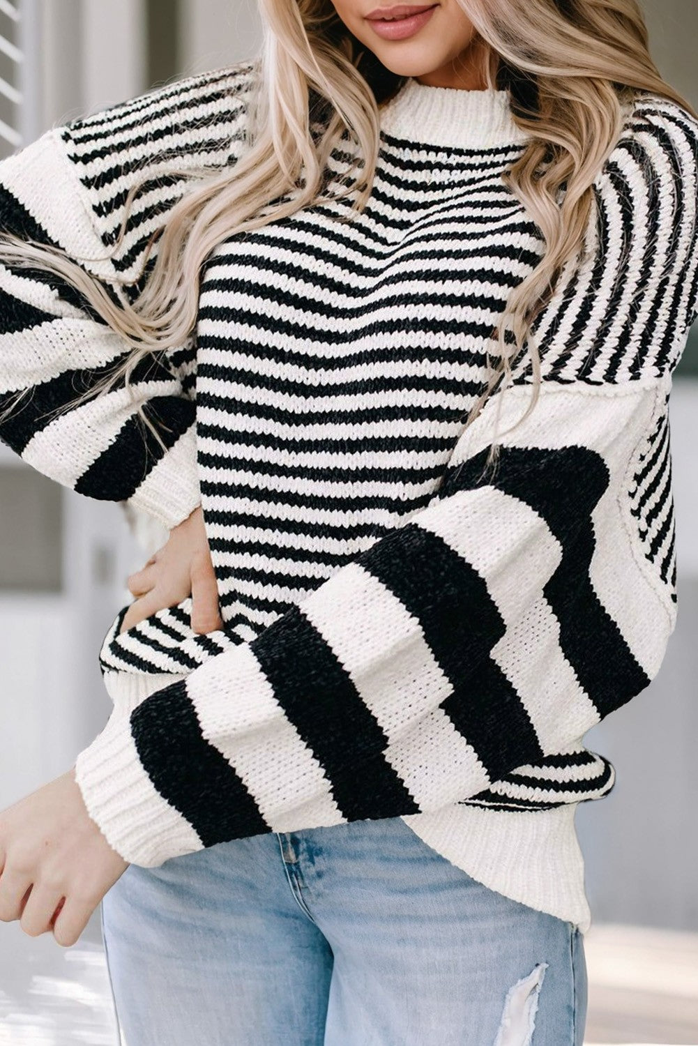 Striped Drop Shoulder Knit Sweater