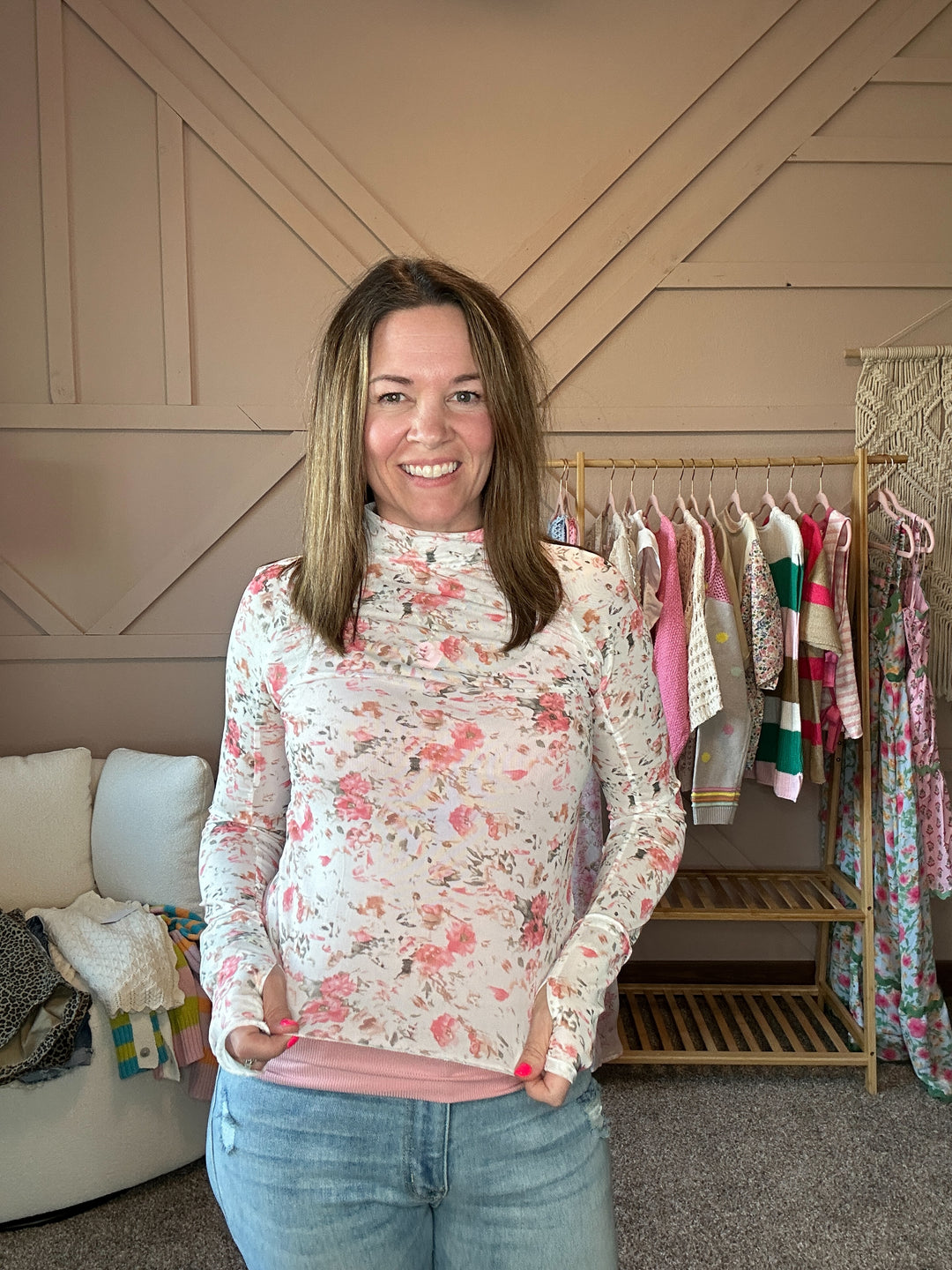 Pink Floral Mesh Top