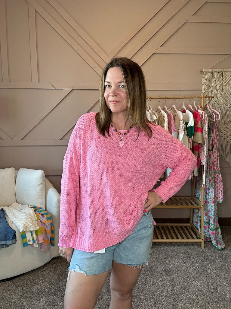 Say hello to your new spring staple! Our Oversized Knit Sweater in the dreamiest pink hue is here to keep things cozy, cute, and effortlessly cool.