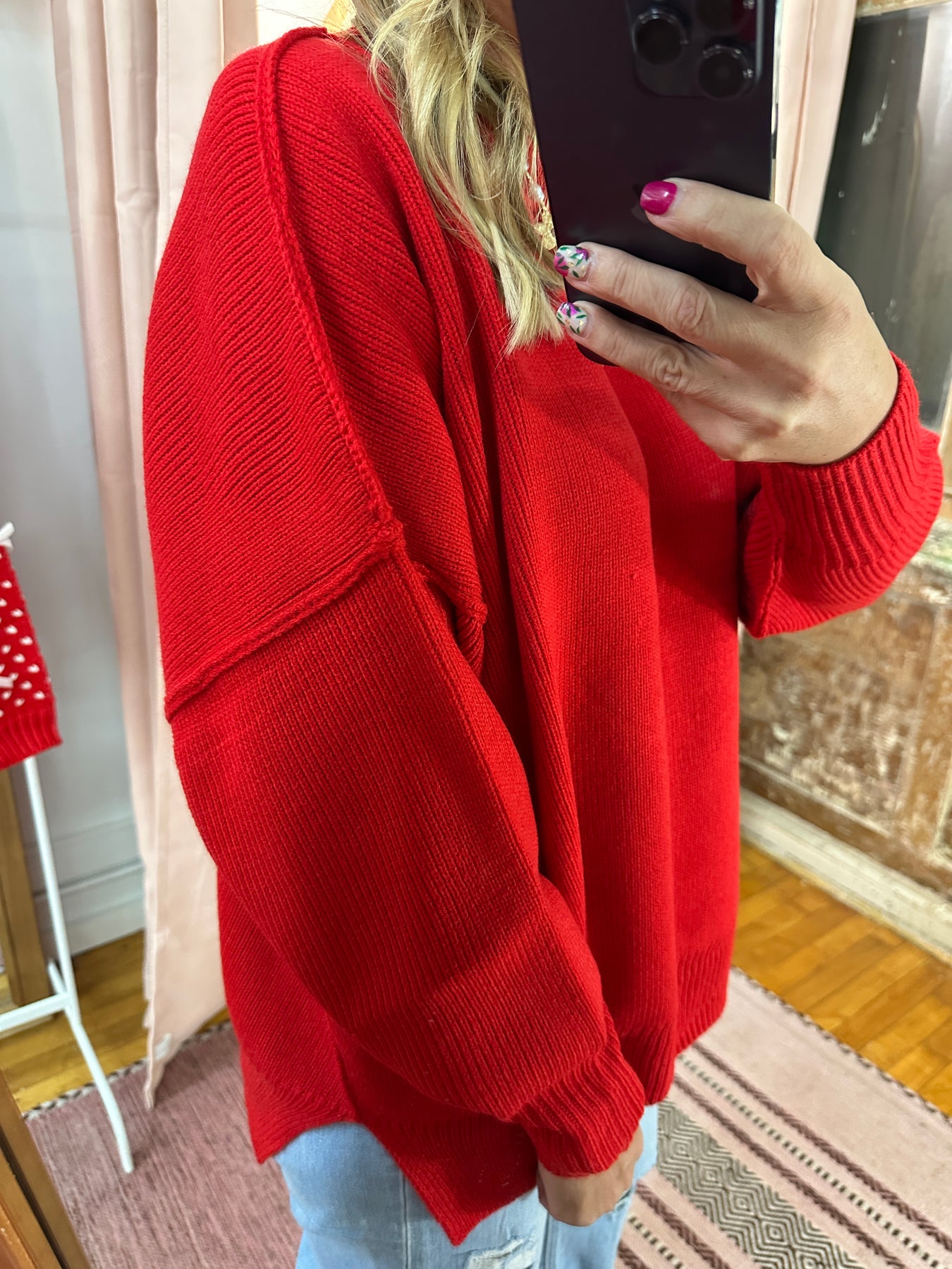 Embrace bold comfort with this Red Drop Shoulder Mock Neck Sweater. Its oversized fit and dropped shoulders create a relaxed, edgy silhouette, while the mock neck adds a confident touch. Crafted from 100% acrylic, this sweater offers warmth without weight, perfect for making a striking statement on crisp days.