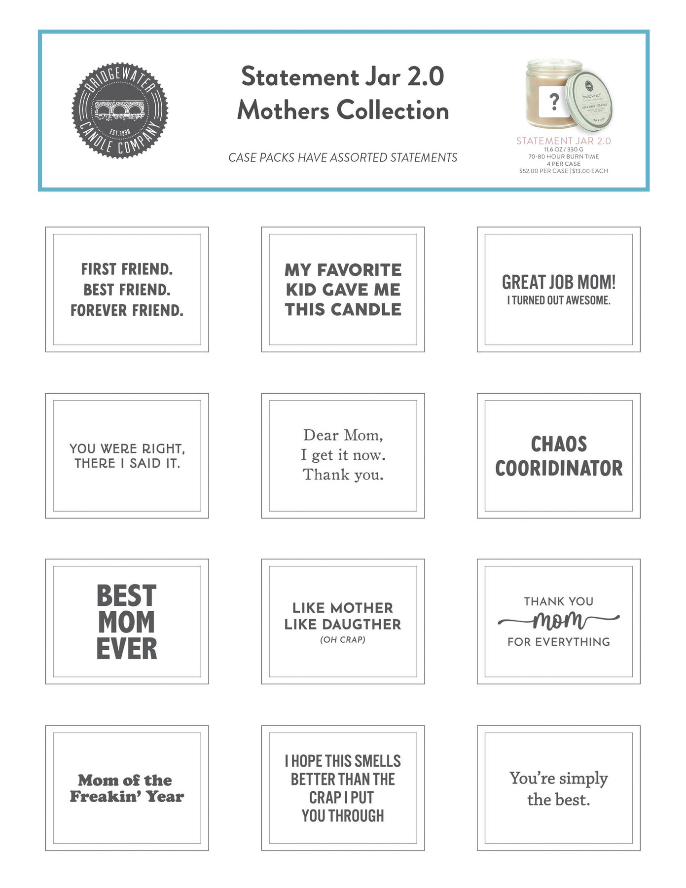 Brimming with gorgeous fragrance and designed to inspire, our Mothers Day Statement Jar Candles are available in our best-selling Sweet Grace scent. Each candle includes an uplifting quote and a clean, simple style that matches every type of décor.
